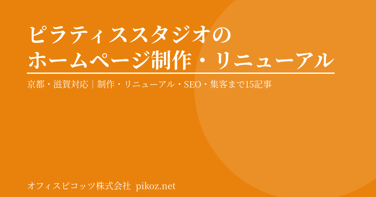 オフィスピコッツでは京都・滋賀を中心にピラティススタジオのウェブ制作・運営を多数サポートしてきました。制作・リニューアル・SEO・コンテンツ設計・集客戦略まで、実践的な記事15本を一覧でご紹介します。